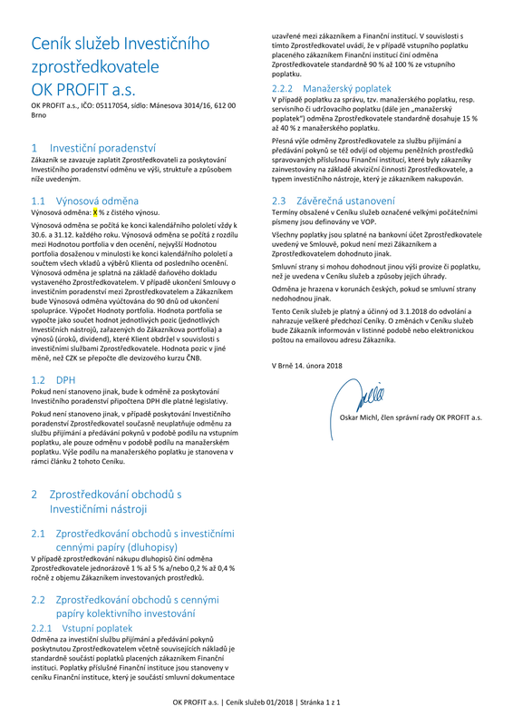 Jsme přesvědčeni, že kvalitní poradenství nemá být založeno na inkasování pravidelných odměn ze vstupních a jiných poplatků bez ohledu na výnosy klientů. Věříme naopak, že má být do značné míry závislé na splnění záměrů klienta, tedy na jeho výnosech, na jeho zisku.